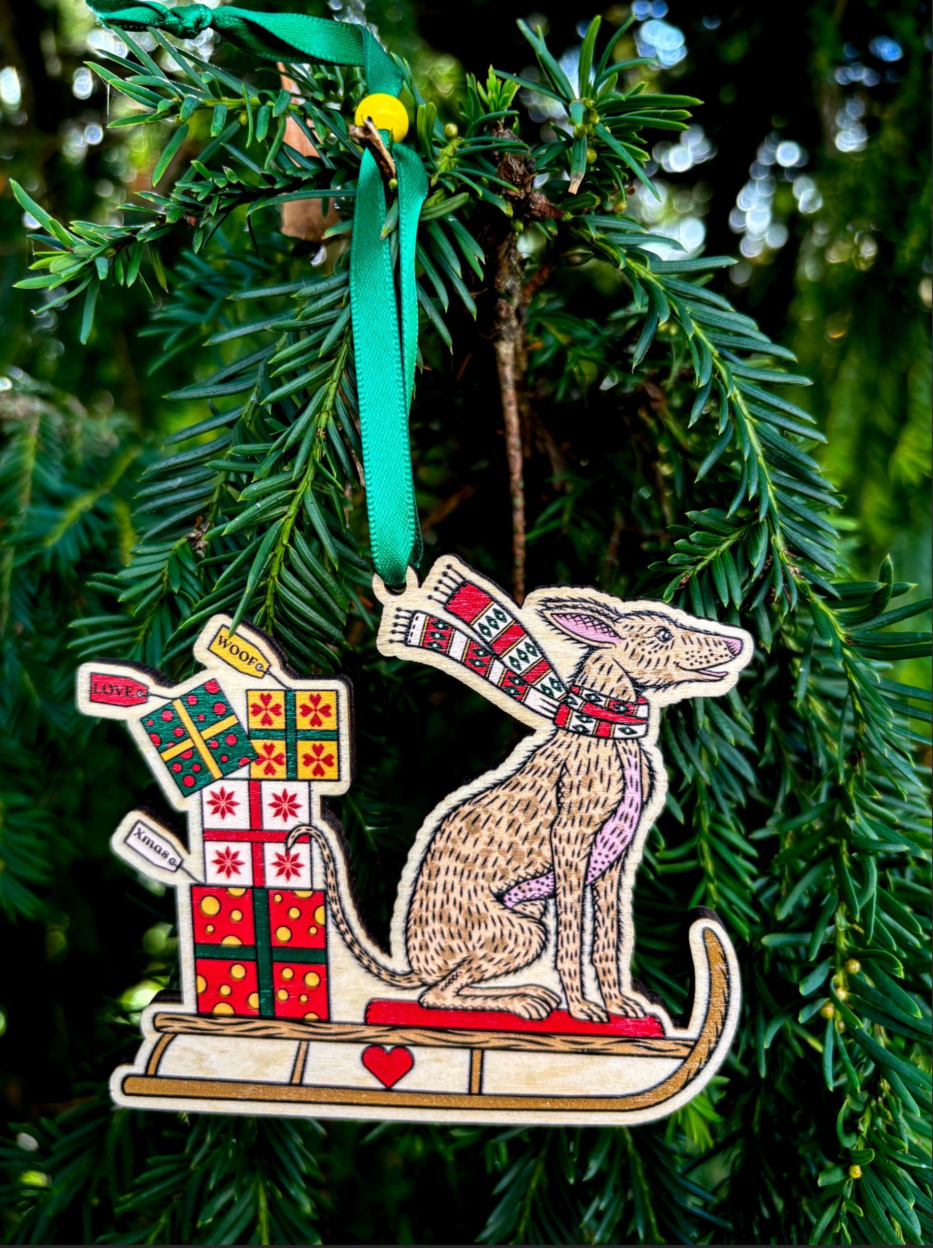 Surface printed, 5mm Birch faced plywood Finished by hand with a satin ribbon